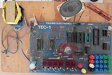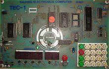 The TEC-1 is a single-board kit computer first produced by the Australian hobbyist electronics magazine Talking Electronics in the early 1980s.[1] The design by John Hardy and Ken Stone was based on the Zilog Z80 CPU, had 2K of RAM and 2K of ROM in a default configuration. Later versions used a 4k ROM with two different versions of the monitor software selectable via a switch. This allowed the early software presented in the magazine to be used with the later version of the TEC-1.