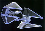 A TIE fighter model used in filming the climax of Star Wars sold at auction for $350,000,[55] and another TIE fighter from the film sold at auction for $402,500.[56] Fans built a 16-foot-by-20-foot, 1,000-pound TIE fighter float to commemorate Star Wars' thirtieth anniversary as part of the 2007 Gala Parade in Crystal Lake, Illinois.[57] A Wired editor's creation of a TIE fighter model out of Starbucks cups and stirrers prompted the magazine to create a contest for its readers to submit their own art out of similar Starbucks material.[58] io9 mocked the variety of TIE fighters in the franchise, listing four TIE models on its list of the eleven "silliest" Star Wars ships.[59]