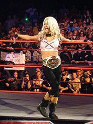 The formation of an official women's division began at Final Resolution in 2007 as TNA spent the early part of the year building up the feud between Gail Kim and Jacqueline, who made her on-air return at the pay-per-view also during the summer a feud between Christy Hemme and Roxxi Laveaux took place. The first TNA Women's Knockout Champion was crowned on October 14, 2007, at Bound for Glory in a 10–Knockout gauntlet match which Gail Kim won with lastly eliminating Roxxi Laveaux.[10] Around this time, TNA signed several additional female wrestlers and personalities, including Angel Williams, Amazing Kong, ODB, Shelly Martinez, and Talia Madison who were then renamed after the PPV, as well as valet Karen Jarrett and new backstage interviewer Crystal Louthan. In a stark departure to TNA's past programming where their female talent were often promoted as eye candy with little to no emphasis on athleticism or wrestling ability, in the same fashion as their WWE Diva counterparts during that time period, TNA's women's division emphasized on serious wrestling competition between their female talent, as well as their credibility on par with their male counterparts.[11] Since the inception of an official championship, matches and segments involving the Knockouts have contributed to drawing some of the better ratings of Impact shows.[12]