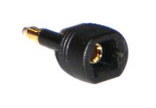 Mini-TOSLINK is a standardized optical fiber connector smaller than the standard square TOSLINK connector commonly used in larger consumer audio equipment. The plug is almost the same size and shape as the ubiquitous 3.5 mm stereo minijack. Adapters are available to connect a full-size TOSLINK plug to a mini-TOSLINK socket. Combined 3.5 mm jack and mini-TOSLINK sockets exist which can accept a 3.5 mm jack or a mini-TOSLINK plug; mini-TOSLINK plugs are made 0.5 mm longer than electrical jack plugs so that the latter are too short to touch and damage the LED of combined connectors. Many laptop computer and portable digital audio equipment models, such as the Google Chromecast Audio device[8][9] and Apple AirPort Express and iPod Hi-Fi, use these connectors that allow for the insertion of 3.5 mm analog (electrical) headphone output or microphone input or mini-TOSLINK digital (optical) output.