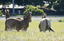 On the lower slopes of Devil's Peak, above Groote Schuur Hospital an animal camp bequeathed to the City of Cape Town by Cecil John Rhodes has been used in recent years as part of the Quagga Project.[32] The quagga used to roam the Cape Peninsula, the Karoo and the Free State in large numbers, but were hunted to extinction during the early 1800s. The last quagga died in an Amsterdam zoo in 1883. In 1987 a project was launched by Reinhold Rau to back-breed the quagga, after it had been established, using mitochondrial DNA obtained from museum specimens, that the quagga was closely related to the plains zebra, and on 20 January 2005 a foal considered to be the first quagga-like individual because of a visible reduced striping, was born. These quagga-like zebras are officially known as Rau quaggas, as no one can be certain that they are anything more than quagga look-alikes. The animal camp above Groote Schuur Hospital has several good looking Rau quaggas, but they are unfortunately not easily seen except from within the game camp, which is quite large and undulating, and the animals are few. The animal camp is not open to the public.