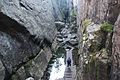 The range is formed of sandstone and, as the only one in Poland, presents plated structure with sheer mountain ledges.[6] Among the tourist attractions there are two massifs: Szczeliniec Wielki on which the labyrinth, and Skalniak on which the labyrinth Błędne Skały (Errant Rocks). There are several notable rock formations, among them Kwoka ("Hen"), Wielbłąd ("Camel"), Małpa ("Monkey"), Głowa Konia ("Horse Head"), Fotel Pradziada ("Great Grandfather's Armchair").