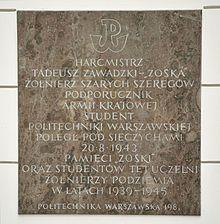 - ^ a b "70. rocznica śmierci Tadeusza "Zośki" Zawadzkiego – Muzeum Historii Polski". muzhp.pl (in Polish). Retrieved April 7, 2018.