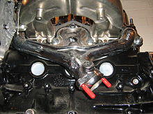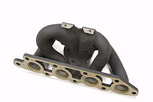 A header is a manifold specifically designed for performance.[4] During design, engineers create a manifold without regard to weight or cost but instead for optimal flow of the exhaust gases. This design results in a header that is more efficient at scavenging the exhaust from the cylinders. Headers are generally circular steel tubing with bends and folds calculated to make the paths from each cylinder's exhaust port to the common outlet all equal length, and joined at narrow angles to encourage pressure waves to flow through the outlet, and not back towards other cylinders. In a set of tuned headers the pipe lengths are carefully calculated to enhance exhaust flow in a particular engine revolutions per minute range.