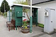 The station buildings, mostly in private occupation, are well maintained. The station is officially an unstaffed halt (tickets must be purchased on the train or prior to travel), but the level crossing at the south end is still manned (due to its location next to the river bridge) and retains its manually-operated metal gates; the crossing keeper works out of an office in the main building. Up until 1993, the crossing also had protecting signals worked from a ground frame on the platform; these were replaced by stop and fixed distant boards after the gates were run through by a train.[3]