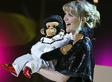 Totte is Zillah's three-year-old (stuffed animal) chimpanzee. The duo talk, sing, and perform magic tricks together for their comical performances. For the winning performance, Zillah & Totte sang Herreys "Diggi-loo diggi-ley" on a stage with large letters that spelled TOTTE. In the middle of the song, Zillah fell backwards over the letters and Totte blamed her for destroying their chance to win. "Now you owe me a million!" said Totte to Zillah before first demanding the audience to vote for him and then sweetly asking for their vote. The strategy worked as they not only won the jury's votes but also votes of the public.[40]