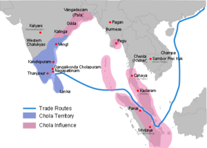 The Cholas, who were very active during the Sangam age, were entirely absent during the first few centuries.[28] The period started with the rivalry between the Pandyas and the Pallavas, which in turn caused the revival of the Cholas.