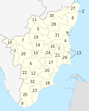 - "Districts of Tamil Nadu". Government of Tamil Nadu. 2011. Retrieved 6 November 2011.