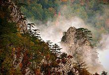 The national park consists of a group of mountain peaks with deep picturesque gorges between them. The highest point of the park is the Kozji Rid peak on the Zvijezda mountain, with 1,591 m (5,220 ft).[3] The most striking of these gorges is the Drina Gorge, with its sheer drops from 1,000 to 250 m (3,280 to 820 ft) and extensive views of western Serbia and nearby Bosnia. It also encompasses the gorges of the rivers Rača, Brusnica and Derventa and the waterfall of Veliki Skakavac on the river Beli Rzav. The area is also characterised by karst caves, pits, springs, and viewing points (Kićak, Smiljevac, Bilješke Stene, Kozje Stene, Vitimirovac and Kozji Rid).[6]