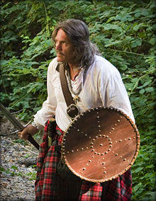 The term refers to various types of shields used by infantry troops from the 13th to 16th centuries, or earlier.[1] More specifically, a targe was a concave shield fitted with enarmes on the inside, one adjustable by a buckle, to be attached to the forearm, and the other fixed as a grip for the left hand. These shields were mostly made of iron or iron-plated wood. From the 15th century, the term could also refer to special shields used for jousting. A fair number were created wholly for show.[2]