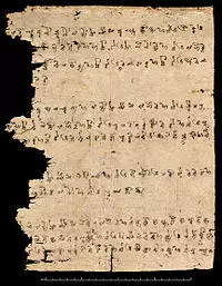 Suggestive evidence of Khotan's early link to India are minted coins from Khotan dated to the 3rd century bearing dual inscriptions in Chinese and Gandhari Prakrit in the Kharosthi script.[49] Although Prakrit was the administrative language of nearby Shanshan, 3rd-century documents from that kingdom record the title hinajha (i.e. "generalissimo") for the king of Khotan, Vij'ida-simha, a distinctively Iranian-based word equivalent to the Sanskrit title senapati, yet nearly identical to the Khotanese Saka hīnāysa attested in contemporary documents.[49] This along with the fact that the king's recorded regnal periods were given in Khotanese as kṣuṇa, "implies an established connection between the Iranian inhabitants and the royal power", according to the late Professor of Iranian Studies Ronald E. Emmerick (d. 2001).[49] He contended that Khotanese-Saka-language royal rescripts of Khotan dated to the 10th century "makes it likely that the ruler of Khotan was a speaker of Iranian."[49] Furthermore, he elaborated on the early name of Khotan: