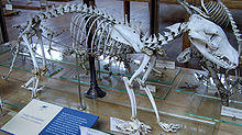 The modern thylacine first appeared about 4 million years ago. Species of the family Thylacinidae date back to the beginning of the Miocene; since the early 1990s, at least seven fossil species have been uncovered at Riversleigh, part of Lawn Hill National Park in northwest Queensland.[9][10] Dickson's thylacine (Nimbacinus dicksoni) is the oldest of the seven discovered fossil species, dating back to 23 million years ago. This thylacinid was much smaller than its more recent relatives.[11] The largest species, the powerful thylacine (Thylacinus potens) which grew to the size of a wolf, was the only species to survive into the late Miocene.[12] In late Pleistocene and early Holocene times, the modern thylacine was widespread (although never numerous) throughout Australia and New Guinea.[13]
