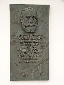 Ignaz Schustala (1822–1891), founder of the company "Ignatz Schustala & Comp" in Kopřivnice, Moravia, started the production of horse-drawn vehicles in 1850. In 1891 it branched out into railroad car manufacture, naming the company "Nesselsdorfer Wagenbau-Fabriksgesellschaft", and employed Hugo Fischer von Röslerstamm as technical director in 1890. After the death of Schustala, von Röslerstamm took over running the company and in 1897 he bought a Benz automobile. Using this for inspiration, the company made its first car, the Präsident, under the direction of engineers Hans Ledwinka and Edmund Rumpler, which was exhibited in 1897 in Vienna.[4] Orders were obtained for more cars, and until 1900, nine improved cars based on Präsident were made.[5]