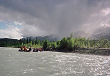 The Tatshenshini River (/ˌtætʃɛnˈʃiːni/; Tlingit Tʼachanshahéeni, Southern Tutchone Shäwshe Chù) is a river in the Canadian boreal forest, in the southwestern Yukon and the northwestern corner of British Columbia. It originates in British Columbia, near Haines Highway. It flows north into Yukon, then it turns west and south before it returns into British Columbia, where it flows through the Tatshenshini-Alsek Provincial Wilderness Park. There it joins the Alsek River, which then flows into the Pacific Ocean in Alaska, United States. It is popular for wilderness rafting trips.