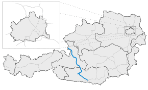 From Flachau, the motorway climbs the northern slope of the Niedere Tauern range with the 6.4 km (4.0 mi) long Tauern Tunnel at an elevation of 1,340 m (4,400 ft) and runs through the Salzburg Lungau region to the toll plaza at Sankt Michael. From here it reaches Rennweg in Carinthia through the 5.9 km (3.7 mi) long Katschberg Tunnel, leading downhill from the Hohe Tauern range to Spittal in the Drava Valley. The southern section of the Tauern Autobahn runs southeastwards along the Drava between the Gurktal and Gailtal Alps to the Villach junction.