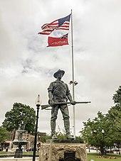 The English founders of Taunton purchased the land from the Nemasket Indians in 1637 as part of the Tetiquet Purchase[6] and the remaining native families were relocated to the praying town of Ponkapoag in current day Canton, MA.[7] Elizabeth Poole contrary to local folklore,[a] did not take part in the town purchase but was among its greatest beneficiaries and played a significant role in the founding of its church.[8][9] Described as "the foundress of Taunton" and its matriarch, Poole "was accorded equality of rights, whether in the purchase of lands, [or] in the sharing of iron works holdings,"[10] having been a financier of the settlement's first dam and mill built for the manufacture of bar iron.[8][b] Plymouth Colony was formally divided into counties on June 2, 1685, with Taunton becoming the shire town of Bristol County. The counties of Plymouth Colony were transferred to the Province of Massachusetts Bay on the arrival of its charter and governor on May 14, 1692. The Taunton area has been the site of skirmishes and battles during various conflicts, including King Philip's War and the American Revolution. Taunton was re-incorporated as a city on May 11, 1864.