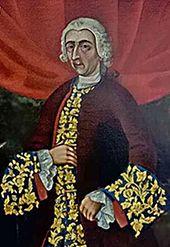 The Parish of Santa Prisca y San Sebastían, commonly referred to as the Santa Prisca Church, is located on the east side of the main plaza of Taxco, and is one of the few Baroque buildings in the state of Guerrero.[13] It was built between 1751 and 1758 by José de la Borda (ca. 1700–1778), who had made a great fortune in the silver mines surrounding the town. Despite his wealth, however, the opulence of the church nearly bankrupted him.[2] It is built with pink stone, flanked by two towers which are plain in the lower half but highly decorated in the upper bell portions. The cupola is covered in colored tile.[15] Inside, there are a number of floor-to-ceiling altarpieces, all covered in gold.[13]