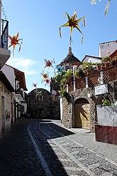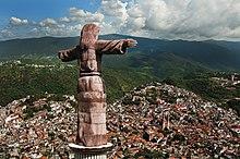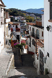 Before the arrival of the Spanish in Mexico, the indigenous community known as "Taxco" was not located where the modern city is now. The name referred to a village about ten kilometers to the south, which is now referred to as Taxco El Viejo (Old Taxco). In pre-Hispanic times, this village was the most important in the area as it was the seat of the Aztec governor who presided over tribute collection in the surrounding seven districts.[1] The modern Spanish town of Taxco was founded by Hernán Cortés in an area previously known as Tetelcingo, because of the abundance of silver here.[1][2]