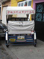 A "bicitaxi" (identified by its license plate) in Ciudad Nezahualcoyotl, Mexico