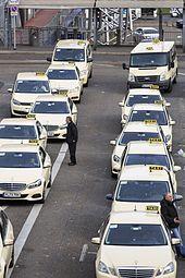 Taxis waiting for customers in Cologne, Germany.