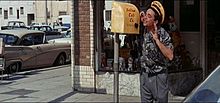 In this scene from It's a Mad, Mad, Mad, Mad World, a yellow cab driver, played by Peter Falk, contacts his dispatch through a callbox on the street. Two-way radio communication had not become a standard by the time the film was made in the early 1960s.