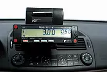 The inside of a Japanese taxicab in Kyoto with GPS navigation on board.