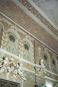 The building has two auditoriums, the main auditorium and the small auditorium. The small auditorium of the conservatoire is known for its richly decorated walls.