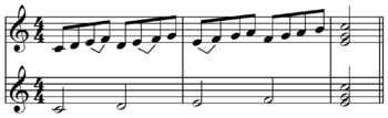 As mentioned above, repetition was a natural part of Tchaikovsky's music, just as it is an integral part of Russian music.[131] His use of sequences within melodies (repeating a tune at a higher or lower pitch in the same voice)[132] could go on for extreme length.[110] The problem with repetition is that, over a period of time, the melody being repeated remains static, even when there is a surface level of rhythmic activity added to it.[133] Tchaikovsky kept the musical conversation flowing by treating melody, tonality, rhythm and sound color as one integrated unit, rather than as separate elements.[134] By making subtle but noticeable changes in the rhythm or phrasing of a tune, modulating to another key, changing the melody itself or varying the instruments playing it, Tchaikovsky could keep a listener's interest from flagging. By extending the number of repetitions, he could increase the musical and dramatic tension of a passage, building "into an emotional experience of almost unbearable intensity," as Brown phrases it, controlling when the peak and release of that tension would take place.[135] Musicologist Martin Cooper calls this practice a subtle form of unifying a piece of music and adds that Tchaikovsky brought it to a high point of refinement.[136] (For more on this practice, see the next section.)
