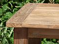 Teak's high oil content, high tensile strength and tight grain make it particularly suitable where weather resistance is desired. It is used in the manufacture of outdoor furniture and boat decks. It is also used for cutting boards, indoor flooring, countertops and as a veneer for indoor finishings. Although easily worked, it can cause severe blunting on edged tools because of the presence of silica in the wood. Over time teak can weather to a silvery-grey finish, especially when exposed to sunlight.[23]