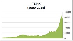 - ^ Tehran Stock Exchange up 80%, TEPIX hits 68,461 Archived 2013-12-18 at the Wayback Machine. Tehran Times, October 11, 2013. Retrieved August 20, 2014.