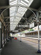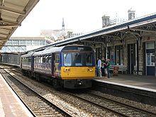Teignmouth is served by Great Western Railway local trains in both directions on an approximately hourly basis during the day - more frequent at peak times. Most trains run between Exmouth and Paignton; on Sundays the service is less frequent and most trains only run between Exeter St Davids and Paignton.[11] A few Great Western Railway trains from Bristol Temple Meads/Cardiff or from London Paddington also call at Teignmouth[11] as do CrossCountry services from the North of England.[12] Most of these services, including the Torbay Express from Paddington, continue to Paignton but a few run instead to Plymouth and even Penzance. At other times passengers travelling east or north catch a local train and change into main line trains at Exeter St Davids, or at Newton Abbot if travelling westwards.