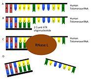- ^ Feng J, Funk WD, Wang SS, Weinrich SL, Avilion AA, Chiu CP, Adams RR, Chang E, Allsopp RC, Yu J (September 1995). "The RNA component of human telomerase". Science. 269 (5228): 1236–41. Bibcode:1995Sci...269.1236F. doi:10.1126/science.7544491. PMID 7544491.