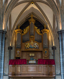 The church contains two organs: a chamber organ built by Robin Jennings in 2001, and a four manual Harrison & Harrison organ, built in 1924 as a private ballroom organ at Glen Tanar Castle and installed at the Temple Church in 1954.[16][17]
