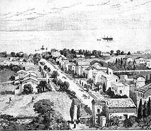 In the same year, Bahá'u'lláh, the prophet-founder of the Baháʼí Faith, arrived in the Haifa-Akka region as a prisoner of the Ottoman Empire. Years later, after his release from strict confinement, he visited the Templer Colony on Mount Carmel several times and wrote a letter to Hardegg.[5] He asked his son, ‘Abdu’l-Baha, to build, on the alignment of the Templer Colony road (Carmel Avenue) with the shrine to the forerunner of the religion, known as "the Bab," halfway up the mountain.[6] The conjunction of the Templer buildings and the Shrine have become the most significant landmark in the modern city of Haifa.