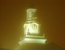 - Derryberry Hall (DBRY) is the signature building on campus. It is home to the Offices of the President and Provost as well as the Offices of Admissions, the Bursar, Records and Registration, Institutional Research, University Development, University Advancement, Graduate Studies, and International Affairs. The building is also the home to the university's main auditorium, Derryberry Auditorium. The oldest building on campus, Derryberry was constructed in 1912 for the university's predecessor, Dixie College, though it has undergone numerous renovations since then.[16] It is named after Everett Derryberry, president of the university from 1940 to 1974. The building's iconic colonial-style clock tower is equipped with a carillon that chimes every quarter-hour and plays selected pieces at 5 p.m. and 10 p.m. daily.[5]