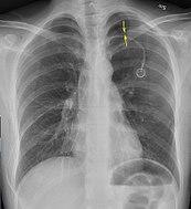 - ^ Seow, A; Kazerooni, E A; Pernicano, P G; Neary, M (1996). "Comparison of upright inspiratory and expiratory chest radiographs for detecting pneumothoraces". American Journal of Roentgenology. 166 (2): 313–16. doi:10.2214/ajr.166.2.8553937. ISSN 0361-803X. PMID 8553937.