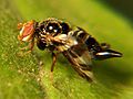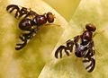 Some fruit flies are used as agents of biological control, thereby reducing the populations of pest species. Several species of the genus Urophora are used as control agents against rangeland-destroying noxious weeds such as starthistles and knapweeds, but their effectiveness is questionable.[4] Urophora sirunaseva produces larvae that pupate within a woody gall within the flower and disrupt seed production.[5] Chaetorellia acrolophi is an effective biocontrol agent against knapweeds Chaetorellia australis and Chaetorellia succinea, deposit eggs into the starthistle seedheads, where their larvae consume the seeds and flower ovaries.[6]