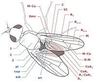 The Tephritidae are one of two fly families referred to as fruit flies, the other family being the Drosophilidae. The family Tephritidae does not include the biological model organisms of the genus Drosophila (in the family Drosophilidae), which is often called the "common fruit fly". Nearly 5,000 described species of tephritid fruit fly are categorized in almost 500 genera of the Tephritidae. Description, recategorization, and genetic analyses are constantly changing the taxonomy of this family. To distinguish them from the Drosophilidae, the Tephritidae are sometimes called peacock flies, in reference to their elaborate and colorful markings. The name comes from the Greek τεφρος, tephros, meaning "ash grey". They are found in all the biogeographic realms.