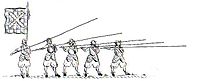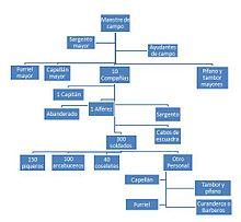 At first, the Tercio denoted not a combat unit, but an administrative unit under a General Staff, commanding garrisons throughout Italy for fights on various distant fronts.[8] This peculiar character was maintained when it mobilized to fight the Protestant rebels in Flanders. Command of the Tercio and its companies was granted directly by the king, and companies could easily be added or removed. By the middle of the 17th century, the Tercios began to be raised by nobles at their own expense, patrons who appointed the captains and were effective owners of the units, as in other contemporaneous European armies.