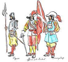 Each company had corps of drums made up of drummers and fifers, sounding duty calls in battle, with the drum major and fife major being provided by the tercio headquarters.