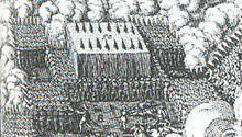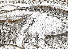 Although other powers adopted the tercio formation, their armies fell short of the fearsome reputation of the Spanish, who possessed a core of experienced professional soldiers.[10] That army was further supplemented by "an army of different nations", a reference to the origin of the troops from the German states and the Italian and Walloon territories of the Spanish Netherlands. Such international musters were characteristic of European warfare before the levies of the Napoleonic Wars. In the 16th and 17th centuries, however, the core Spanish troops were Spanish subjects, admired for their cohesiveness, superior discipline and overall professionalism.[11]