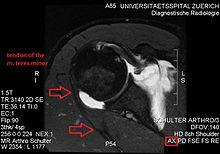 - ^ Melis, Barbara; DeFranco, Michael; Ladermann, Alexandre; Barthelemy, Renaud; Walch, Gilles (2011). "The teres minor muscle in rotator cuff tendon tears". Skeletal Radiology. 40 (10): 1335–1344. doi:10.1007/s00256-011-1178-3. Retrieved 28 November 2016.