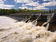 The Moulin-Neuf dam allows for the flow regulation of the Rivière des Mille Îles, as well as ice accumulation control in the spring.