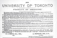 - ^ a b c "What medical school was recognized as among the "best on the continent" within 20 years of its opening?". History Q & A. University of Toronto Department of Public Affairs. 2002. Retrieved November 2, 2008.
