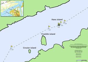 Hans Island is situated in the Nares Strait, a waterway that runs between Ellesmere Island (the northernmost part of Nunavut, Canada) and Greenland. The small uninhabited island, sized 1.3 km2 (0.5 sq mi), was named for Greenlandic Arctic traveller Hans Hendrik.