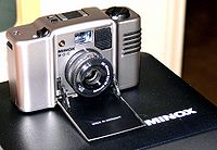 - ^ Bob Shell:"The 35mm f2.8 Minoxar MC lens of this little camera is a jewel, it is razor sharp at all apertures, producing images which could not be distinguished from ones taken with my usual SLR outfit. Color rendition is excellent, partially due to the built in skylight filter which also acts as a lens protector. I could detect no distortion in my images at all.", from "Minox GT-E Pocket Camera" Shutterbug, Sep 1991