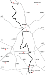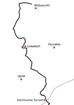 Trailheads | Walbury Hill in West Berkshire 51°21′14″N 1°27′50″W / 51.354°N 1.4639°W Eling in Hampshire 50°54′43″N 1°28′51″W / 50.912°N 1.4807°W |