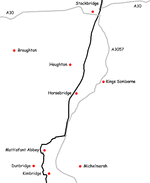 The trail also passes alongside Horsebridge railway station. Much of the route between Kimbridge and Chilbolton follows the route of the former Andover and Redbridge Railway.