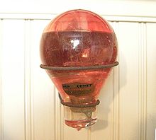 In the first half of the 20th century, another common fire extinguisher was a single-use, sealed glass globe known as a "fire grenade", filled with either carbon tetrachloride or salt water. The bulb could be thrown at the base of the flames to quench the fire. The carbon tetrachloride type could also be installed in a spring-loaded wall fixture with a solder-based restraint. When the solder melted by high heat, the spring would either break the globe or launch it out of the bracket, allowing the extinguishing agent to be automatically dispersed into the fire. A well-known brand was the "Red Comet", which was variously manufactured with other fire-fighting equipment in the Denver, Colorado area by the Red Comet Manufacturing Company from its founding in 1919 until manufacturing operations were closed in the early 1980s.[31]