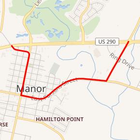 Loop 212 starts northwest of Manor at US 290. It proceeds along Murray Avenue and then turns south to follow Lexington Street through the center of Manor. It turns east at Parsons Street at an intersection with FM 973. Upon leaving Manor, Loop 212 is renamed to Old State Highway 20. Loop 212 then turns north to intersect again with US 290. Loop 212 terminates here, while the road continues to the north of US 290 as FM 973.[3]